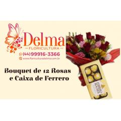 Bouquet de 12 Rosas Com Caixa de Ferrero